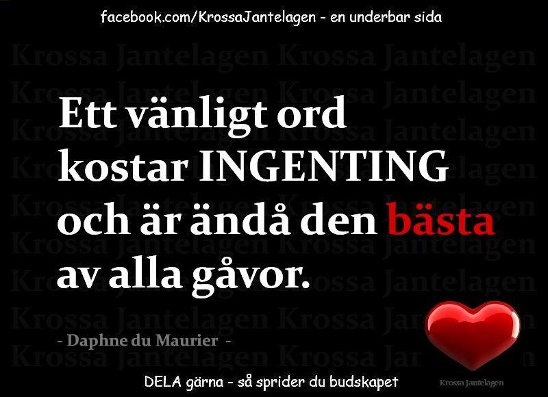 Jag älskar er, jag öser kärlek över er, ni är bäst…. Själv anser jag att jag är ganska bra på det jag gör. Jag står upp för det jag tror på och klappar mig själv på axeln när jag lyckats genomföra något. Jag kommer fortsätta att tycka att jag är en okej tjej i mina bästa år som älskar att jobba, umgås med vänner och familj. Som älskar det faktum att jag bor i skogen och får vara kreativ. Jag väljer hur jag ska tänka, och varje morgon jag vaknar så är det helt upp till mig vad och hur jag ska agera och tänka i olika situationer. Jag ser inte ner på andra, det är jag stolt över. Jag kan berömma andra, det är jag mycket stolt över och om jag någon gång skulle engagera mig i politiken på allvar så skulle den första punkten på dagordningen vara: SKROTA DEN DÄR JANTELAGEN och var stolt över dig själv och andra… Bara där skulle hälften vara vunnet där våra barn och unga kan ta med sig kraften i att vara bra. Att bära med sig eller med våra eldsjälars arbete skapa en självkänsla! Och med tanke på ämnet… VEM tror du att du är som har rätten att döma andra människor, att håna deras drömmar och trampa på deras självkänsla? Vem i helvete tror du att du är genom att krossa, förtala och förnedra andra? Men vet du… Människor med något vett i skallen vet att det bara är dig själv du förnedrar, det är bara din egen spegelbild som blir sämre. Det är på grund av din egen dåliga självkänsla som du mobbar och tar ner andra, du inbillar dig att du lyfts i sammanhanget och hamnar ett pinnhål upp bland dem du pratar till… Sorgligt, jag är ledsen, det funkar inte så! Tro på dig själv och din förmåga istället, så kan du också börja tro på andra!! Jag lovar, det är en störtskön känsla!