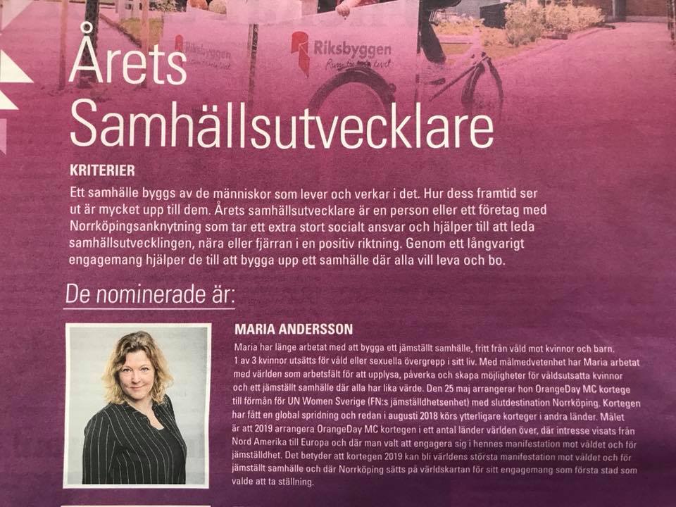 Nominerad till Årets samhällsutvecklare 2018